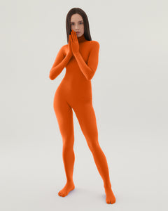 We have been working on this product for over 6 years, we finally have a fitted mock neck catsuit, seamless on the legs, torso, arms and fingers. It features a 5 inches seam on the shoulders to make it fit like a second skin. The catsuit has a 20 inches white invisible zipper that can be worn to the front or the back depending on your needs. This is a footed version, toes are individually covered , the knitting of this suit allows you to cut wherever you need without running into run issues, pun intended.