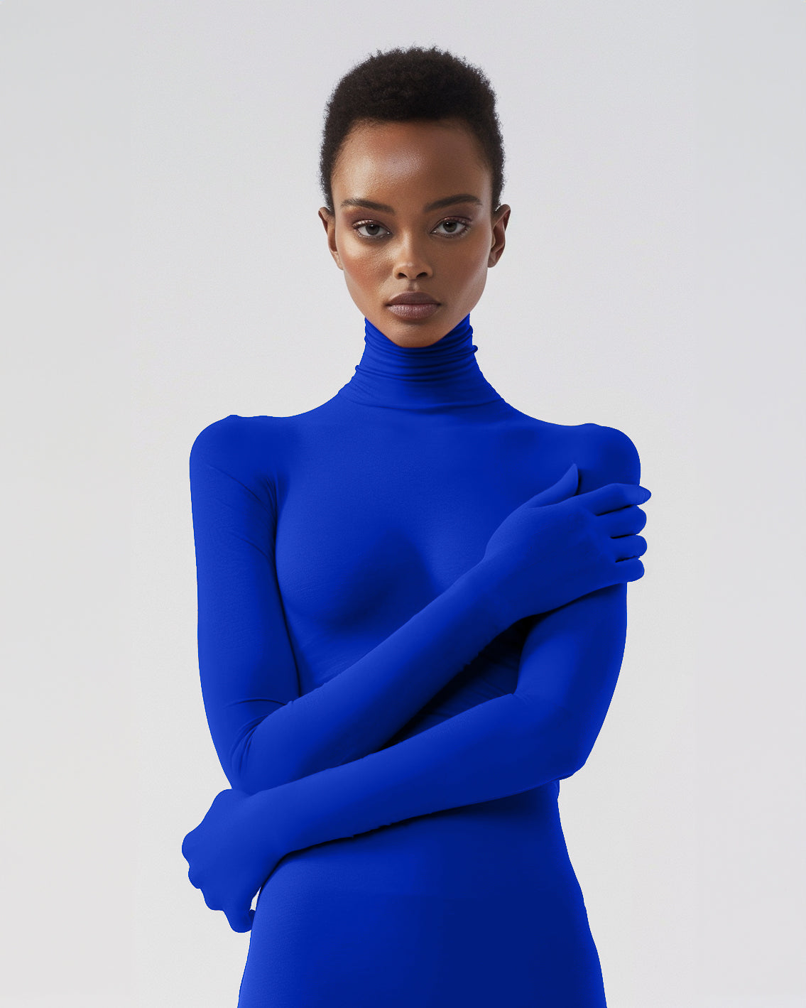 We have been working on this product for over 6 years, we finally have a fitted mock neck catsuit, seamless on the legs, torso, arms and fingers. It features a 5 inches seam on the shoulders to make it fit like a second skin. The catsuit has a 20 inches white invisible zipper that can be worn to the front or the back depending on your needs. This is a footed version, toes are individually covered , the knitting of this suit allows you to cut wherever you need without running into run issues, pun intended.