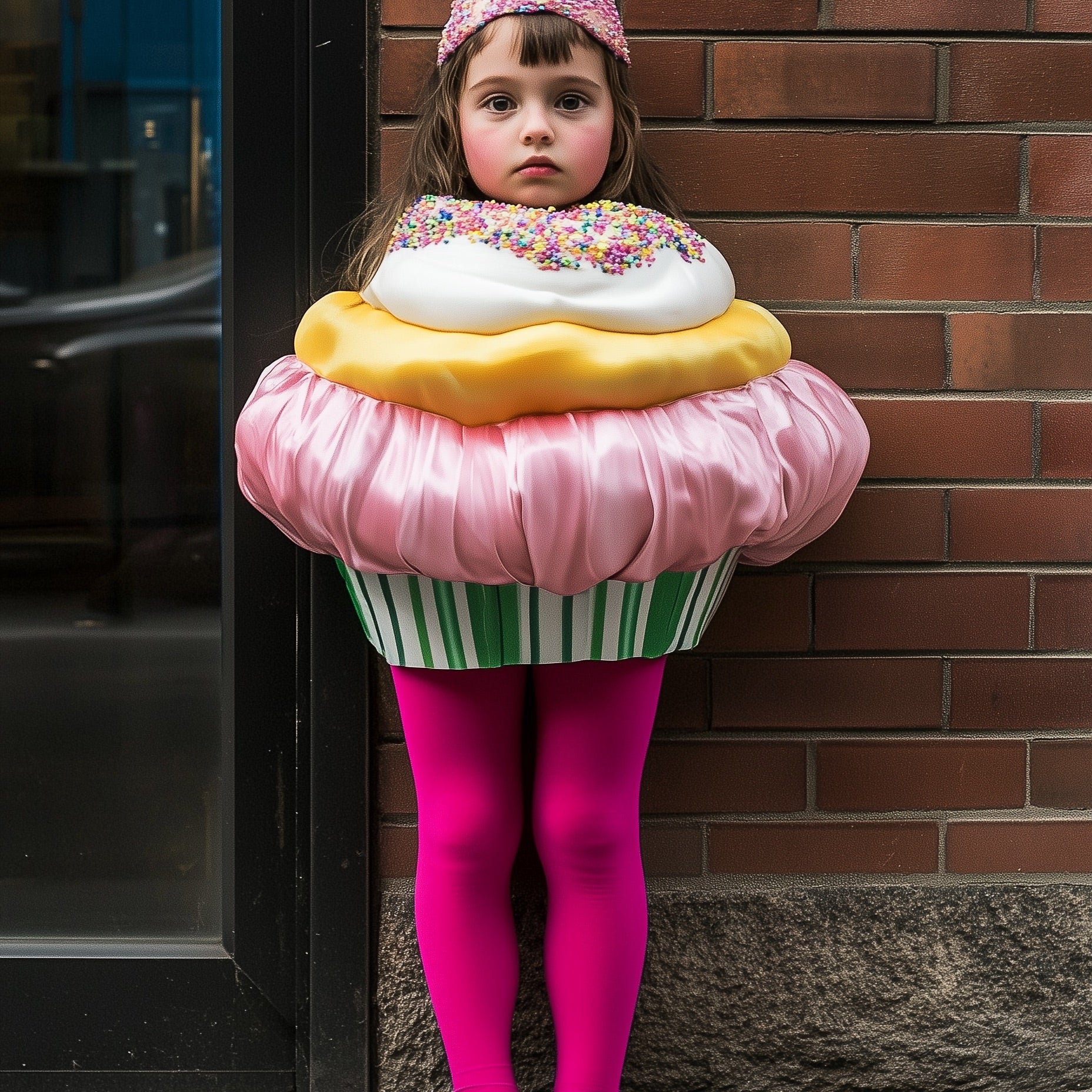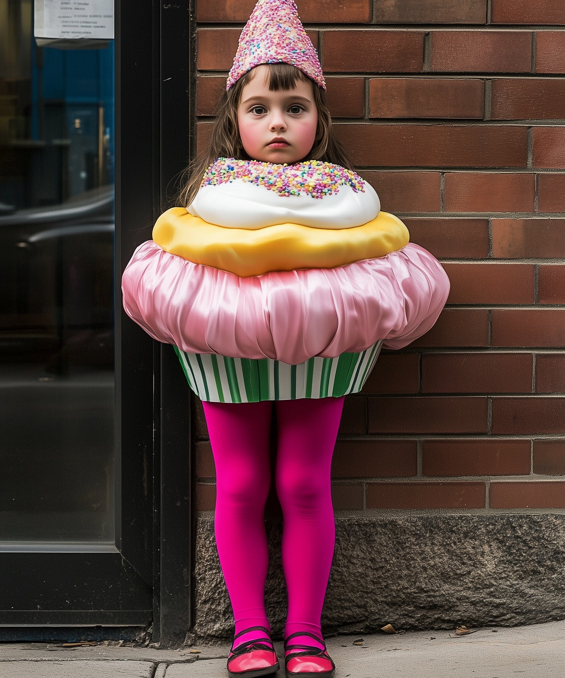 These magenta tights are the cherry on top of this adorable cupcake costume!
