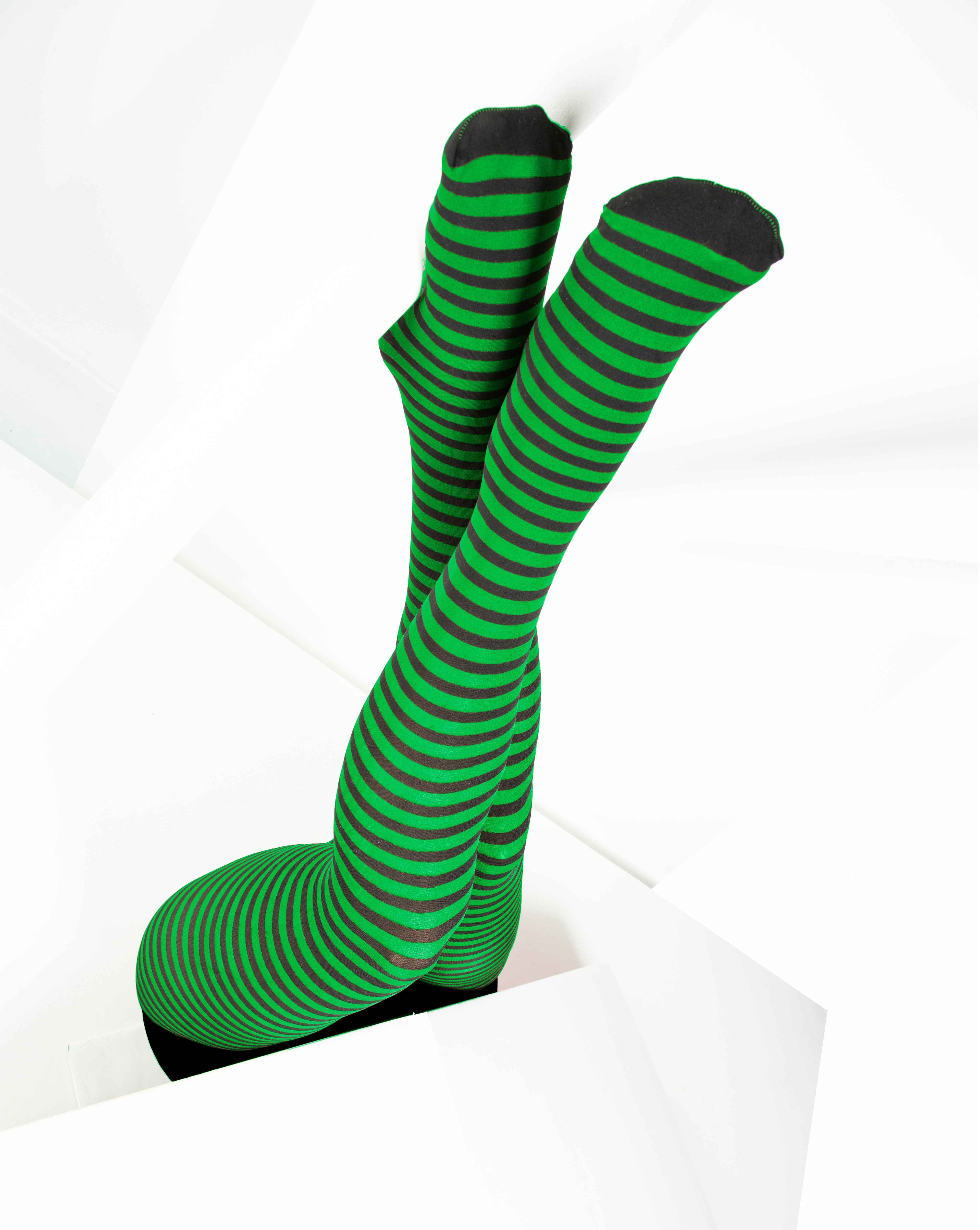 Black Striped Tights 70 Denier - Kelly Green