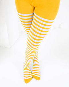 Add a little something special to your basic black tights in these cute and comfortable white striped tights. Flexible and durable these are perfect with any outfit or costume.