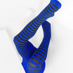 Add a little something special to your basic black tights in these cute and comfortable white striped tights. Flexible and durable these are perfect with any outfit or costume.