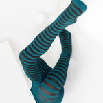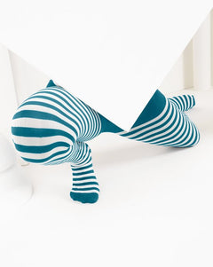 Kids Black Striped Tights 70 Denier - Teal