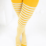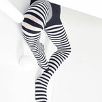 Add a little something special to your basic white tights in these cute and comfortable white striped tights. Flexible and durable these are perfect with any outfit or costume.