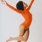 Long Sleeve Mock Neck Leotard - Orange