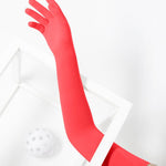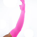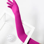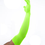 Matte opaque fitted long shoulder gloves, also known as Armsocks. Designed and manufactured exclusively by We Love Colors using a special knitting method that makes our two sizes fit most hands. Perfect alternative to body paint and performances or simply to add a twist to your look. These are knitted gloves.