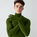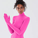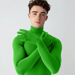 We have been working on this product for over 6 years, we finally have a fitted mock neck catsuit, seamless on the legs, torso, arms and fingers. It features a 5 inches seam on the shoulders to make it fit like a second skin. The catsuit has a 20 inches white invisible zipper that can be worn to the front or the back depending on your needs. This is a footed version, toes are individually covered , the knitting of this suit allows you to cut wherever you need without running into run issues, pun intended.
