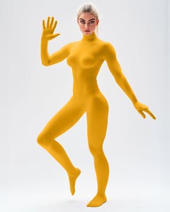 We have been working on this product for over 6 years, we finally have a fitted mock neck catsuit, seamless on the legs, torso, arms and fingers. It features a 5 inches seam on the shoulders to make it fit like a second skin. The catsuit has a 20 inches white invisible zipper that can be worn to the front or the back depending on your needs. This is a footed version, toes are individually covered , the knitting of this suit allows you to cut wherever you need without running into run issues, pun intended.