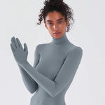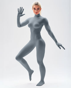 We have been working on this product for over 6 years, we finally have a fitted mock neck catsuit, seamless on the legs, torso, arms and fingers. It features a 5 inches seam on the shoulders to make it fit like a second skin. The catsuit has a 20 inches white invisible zipper that can be worn to the front or the back depending on your needs. This is a footed version, toes are individually covered , the knitting of this suit allows you to cut wherever you need without running into run issues, pun intended.