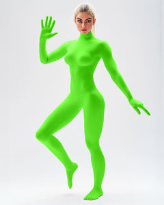 We have been working on this product for over 6 years, we finally have a fitted mock neck catsuit, seamless on the legs, torso, arms and fingers. It features a 5 inches seam on the shoulders to make it fit like a second skin. The catsuit has a 20 inches white invisible zipper that can be worn to the front or the back depending on your needs. This is a footed version, toes are individually covered , the knitting of this suit allows you to cut wherever you need without running into run issues, pun intended.