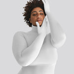We have been working on this product for over 6 years, we finally have a fitted mock neck catsuit, seamless on the legs, torso, arms and fingers. It features a 5 inches seam on the shoulders to make it fit like a second skin. The catsuit has a 20 inches white invisible zipper that can be worn to the front or the back depending on your needs. This is a footed version, toes are individually covered , the knitting of this suit allows you to cut wherever you need without running into run issues, pun intended.