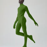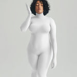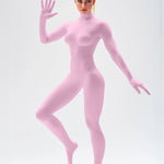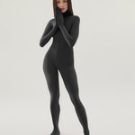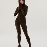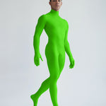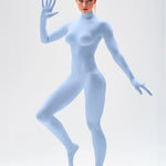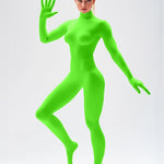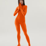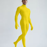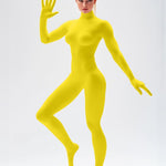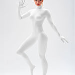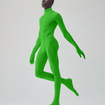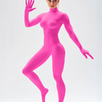 We have been working on this product for over 6 years, we finally have a fitted mock neck catsuit, seamless on the legs, torso, arms and fingers. It features a 5 inches seam on the shoulders to make it fit like a second skin. The catsuit has a 20 inches white invisible zipper that can be worn to the front or the back depending on your needs. This is a footed version, toes are individually covered , the knitting of this suit allows you to cut wherever you need without running into run issues, pun intended.
