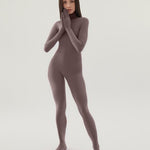 We have been working on this product for over 6 years, we finally have a fitted mock neck catsuit, seamless on the legs, torso, arms and fingers. It features a 5 inches seam on the shoulders to make it fit like a second skin. The catsuit has a 20 inches white invisible zipper that can be worn to the front or the back depending on your needs. This is a footed version, toes are individually covered , the knitting of this suit allows you to cut wherever you need without running into run issues, pun intended.