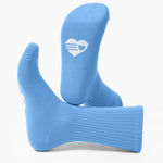 Our socks are the perfect blend of style and performance, crafted from high-quality materials. Feel exceptional comfort with arch support, elastic leg ribbing, terry cushion foot bottom, and a hand-linked toe seam. Our ribbed design offers a secure and snug fit with a reinforced arch. Our socks breathable, moisture wicking, and quick drying design keeps moisture away to keep your feet cool and dry. Featuring the We Love Colors logo on the bottom of the foot, you will be full of love with every step. One size fits most size US 6-13.